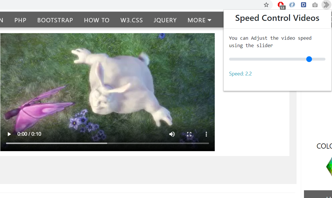 - After installing the extension. You click on the extension icon and can adjust the speed of the HTML5 video playing.
